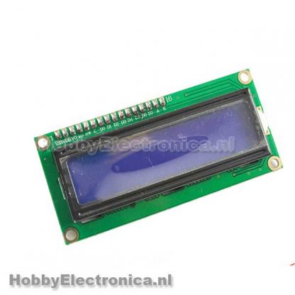 1602 LCD I2c blauw backlight. Een 16×2 LCD met 2 regels en 16 kolommen. Voorzien van een I2C interface, aan te sturen met 2 pinnen via een Arduino. Dit display heeft witte letters op een blauwe achtergrond.