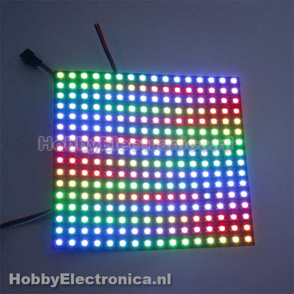 16×16 RGB WS2812B LED Flex module. Flexibele LED module met 256 LED’s. Elke LED is individueel aan te sturen. Werkt met de Neopixel library.