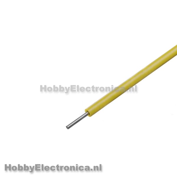 22 awg solide kern 1 meter geel. Perfect voor breadboarding, vrije bedrading, prototyping etc. Dit massieve draad is eenvoudig te solderen. Wanneer het gebogen is, behoudt het zijn vorm redelijk goed. De draaddikte is 22 AWG, wat naar onze mening de beste allround diameter is, het werkt het beste met breadboards en perfboards, maar past ook mooi in aansluit blokken.