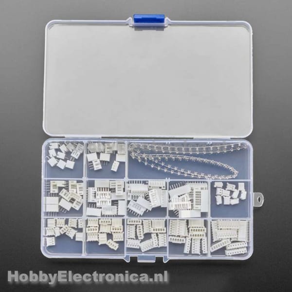 220pcs JST PH 2.0mm kit. De JST PH2.0mm connector kit bestaat uit 220 stuks connectoren. Deze kit is ideaal voor het maken van verbindingen in elektronische circuits en bedradings toepassingen. De connectoren in deze kit zijn van het JST PH2.0mm type, wat verwijst naar de pitch (afstand tussen de pinnen) van 2.0mm. Dit maakt ze geschikt voor het aansluiten van draden en kabels met een vergelijkbare pitch.
