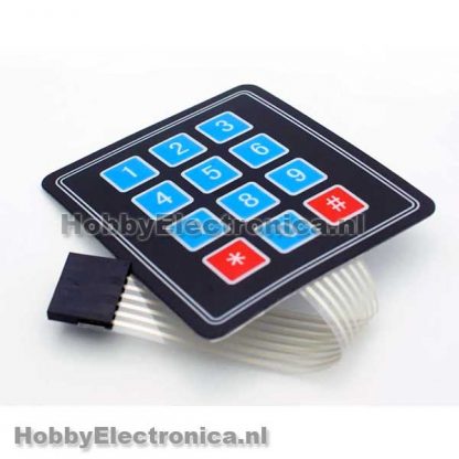 4×3 Membrane matrix keypad met 4 rijen en 3 kolomen. Zelfklevend door middel van een sticker op achterkant.