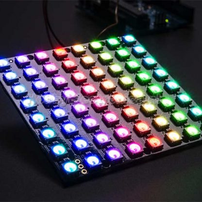 8×8 RGB WS2812B LED Flex module. Flexibele LED module met 64 LED’s. Elke LED is individueel aan te sturen. Werkt met de Neopixel library.