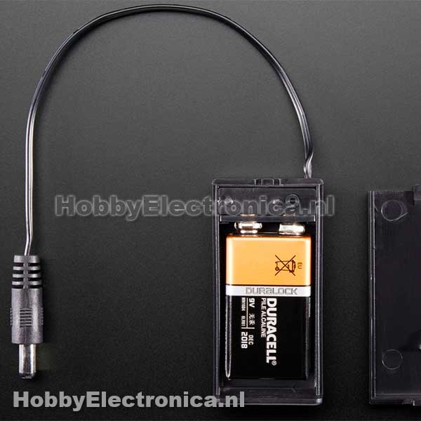9v batterij houder met plug. Plug Type: 2.1 x 5.5mm Male, past op een arduino.
