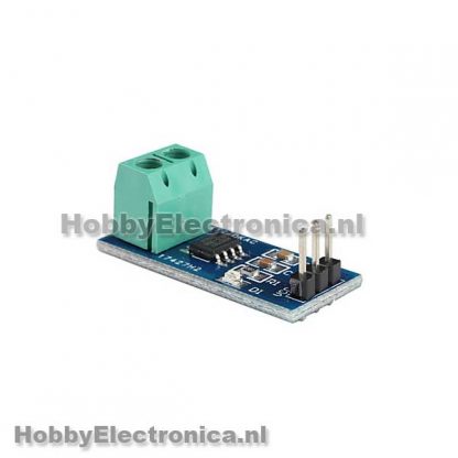De sensormodule kan 30A positief en negatief meten. De output is 66mV per gemeten Ampere.