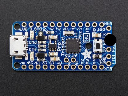 Adafruit Pro Trinket 3V 12MHz combineert alles goede van de trinket met de bekendheid van de Arduino chip, de ATmega328. Het is als een Arduino Pro Mini met meer pinnen en USB onboard. Met 18 GPIO, 2 extra analoge ingangen, 28K Flash en 2K RAM.