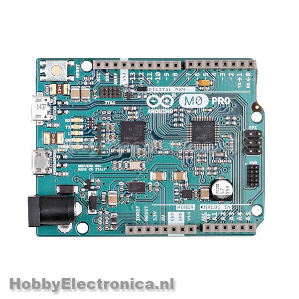 Arduino M0 Pro Atmel SAMD21 MCU is een eenvoudige, maar krachtige, 32-bit uitbreiding van de Arduino lijn. Op basis van der Atmel SAMD21 MCU, met een 32-bit ARM-Cortex® M0 kern. Dit gezamenlijk door Arduino en Atmel ontwikkelde board is een 32-bits opvolger van de Arduino Uno die speciaal is bedoeld voor het ontwikkelen van innovatieve toepassingen voor het Internet of Things (IoT).