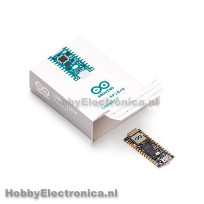 Arduino Nano RP2040 Connect. Het past in de Arduino Nano-vormfactor, waardoor het een klein bord is met GROTE functies. Het brein van het bord is het Raspberry Pi RP2040-silicium; een dual-core Arm Cortex M0+ draait op 133 MHz. Het heeft 264 KB SRAM en het 16 MB flashgeheugen is off-chip om u extra opslagruimte te bieden. Het heeft ingebouwde sensoren zoals een microfoon en bewegingsdetectie.