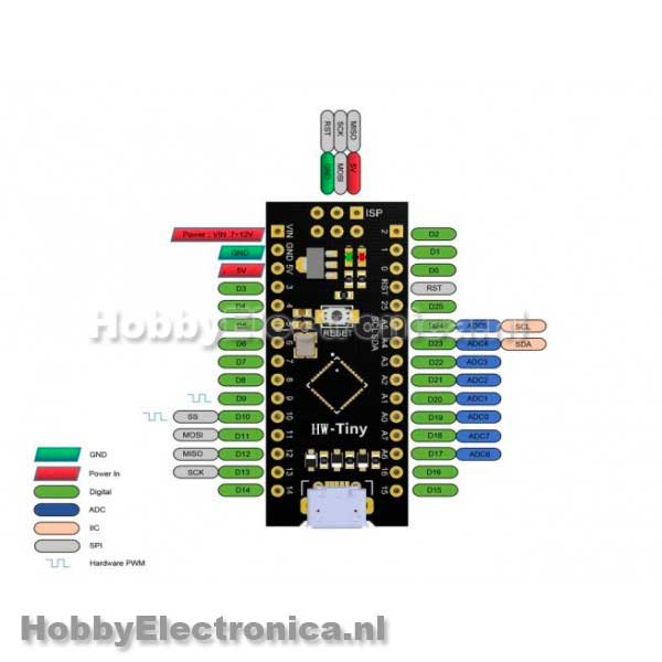 – Digitale I/O Pinnen: 26 (waarvan 2 PWM en 2 in gebruik voor usb serieel)