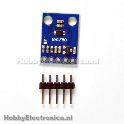BH1750 digitale licht sensor meet de lichtsterkte in lux. Heeft een meetbereik van 1 – 65535 lx. Een onboard analog naar digitaal converter zodat de meet waarden direct via i2c kunnen worden uitgelezen. I2C adres is in te stellen via de addr pin dmv een hoog of laag signaal.