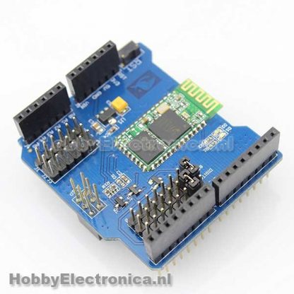 Bluetooth Shield is volledig gekwalificeerd Bluetooth V2.0 + EDR (Enhanced Data Rate) 3Mbps modulatie met complete 2.4GHz radio transceiver en baseband. Het maakt gebruik van MVO Bluecore 04-Externe enkele chip Bluetooth-systeem met CMOS-technologie en met AFH (Adaptive Frequency Hopping Feature).