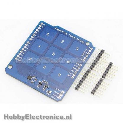 Capacitive Touch Shield 9 buttons heeft 9 ingebouwde op capacitive touch pads en de andere 3 elektrode voor verder gebruik. Dit shield heeft een totaal van 12 aanraak gevoelige knoppen. Dit Shield maakt gebruik van de MPR121 chip dat is een geweldige manier om eenvoudige capacitive touch interfaces met de I2C-communicatie te bouwen. Een on-board logic level converter maakt het mogelijk om te werken met de 5V en 3.3V Arduino boards. Komt met losse header die nog moeten worden gesoldeerd.