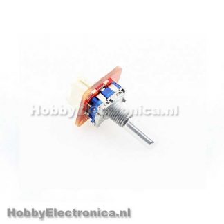 Crowtail Encoder codeert de rotatie van de as en geeft een elektronisch pulse. Er zijn twee output pinnen op deze module, signaal A en signaal B. Kan de as rotatieen ende richting aangeven, met de klok mee of tegen de klok in, door het aftasten van de output pinnen, met 20 pulsen per cirkel.