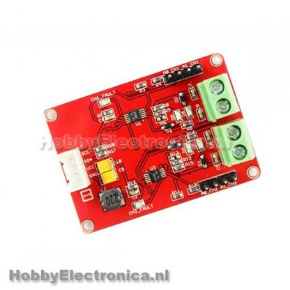 Crowtail I2C motor driver heeft twee DRV8830. De DRV8830 biedt een geïntegreerde motor driver oplossing voor batterij-aangedreven speelgoed, printers, en andere low-voltage of batterij-aangedreven motion control toepassingen. De module heeft twee H-bridge drivers en kan twee gelijkstroommotoren of andere belastingen besturen als solenoids. Het vereist een onboard 5V spanningsregelaar voor de I2C bus. Alle driver lijnen zijn diode beschermd. Voorzien van LED’s, een storing indicator en vier LED’s om aan te geven welke richting elke motor draait.