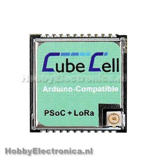 CubeCell module 433MHz. CubeCell is een nieuwe productserie gemaakt door het Heltec-team, voornamelijk voor LoRa / LoRaWAN toepassingen. De CubeCell serie is gebaseerd op ASR605x (ASR6501, ASR6502), die chips zijn al geïntegreerd in de PSoC® 4000-serie MCU (ARM® Cortex® M0 + Core) en SX1262. Er is veel migratie en ontwikkeling gedaan, dat heeft ervoor gezorgd dat het Arduino perfect ondersteunt, het LoRaWAN-protocol stabiel uitgevoerd wordt en gemakkelijk op lithiumbatterijen en zonnepanelen aangesloten worden.