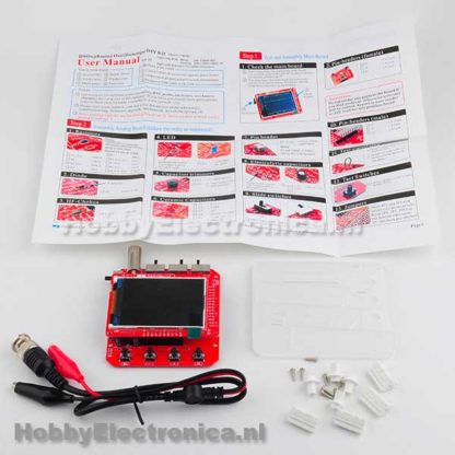 Digitale oscilloscoop DSO138 mini met behuizing. DSO138 is ontworpen als een trainings oscilloscoopkit. Het bevat alleen de basis oscilloscoop functies. Eenvoud in structuur en gemak in montage/bediening behoren tot de belangrijkste doelstellingen van het ontwerp.