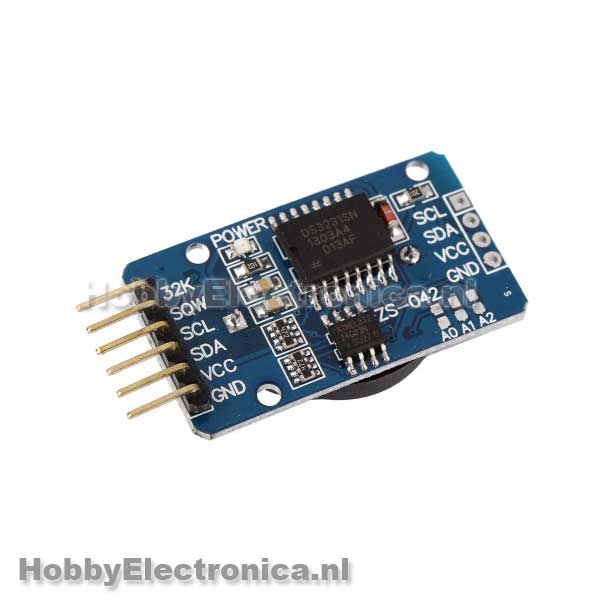 DS3231 IIC real time clock om gemakkelijk de tijd bij te houden. De communicatie gaat via een I2C interface en is compatible van 3.3V tot 5V. Deze RTC module is gebaseerd op de DS3231 en een 2032 backup oplaadbare batterij(niet meegeleverd LIR2032). De AT24C32 32K I2C EEPROM kan gebruikt worden voor extra opslag. Het verschil met de DS1307 RTC module is dat de DS3231 nauwkeuriger is door het ingebouwde crystal die temperatuur gecompenseerd is.