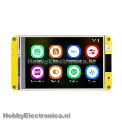 ESP32 3.5 tft 480 320 touch touch is een module die is gebaseerd op de ESP32-chip van Espressif. Deze is ontworpen voor gebruik in draadloze communicatie- en IoT-toepassingen en heeft een scherm met een resolutie van 480 x 320 pixels. TFT_eSPI en LovyanGFX libraries kunnen worden gebruikt om het scherm aan te sturen. LVGL library kan worden gebruikt voor hoge resolutie GUI elementen.