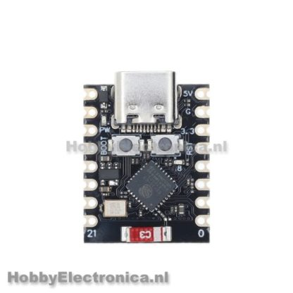 ESP32 C3 super mini bord is een krachtig IoT-mini-ontwikkelbord met de Espressif ESP32C3 WiFi/Bluetooth dual-mode-chip. Ontdek de mogelijkheden van deze 32-bits RISC-V CPU met FPU, die indrukwekkende rekenkracht biedt. Profiteer van uitstekende RF-prestaties en ondersteuning voor IEEE 802.11 b/g/n WiFi en Bluetooth 5 (LE). Met 11 digitale I/O’s (PWM) en 4 analoge I/O’s (ADC) biedt het bord rijke interfaces voor diverse toepassingen. Verken de flexibiliteit van vier seriële interfaces: UART, I2C, en SPI. Met een kleine resetknop en bootloader-modusknop is dit bord ideaal voor energiezuinige IoT-toepassingen en draadloze draagbare toepassingen. Ontdek de kracht, efficiëntie en kosteneffectiviteit van de ESP32-C3 SuperMini voor jouw projecten.