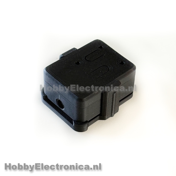 ESP32 C6 super mini behuizing met montage beugel. Heeft een diepte van 8mm onder het bord voor aansluitingen en 4mm gat voor kabel doorvoer. Usb-c verbinding is bereikbaar, gaatjes voor de led’s en toegang tot de push buttons. Met tool om het klik deksel te openen.