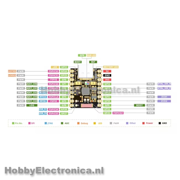 Esp32 H2 supermini is een energiezuinig IoT ontwikkelbord gebaseerd op de krachtige Espressif ESP32-H2 chip met 32-bit RISC-V processor (96 MHz). Dit compacte board ondersteunt Zigbee, Thread en Bluetooth Low Energy (BLE) voor betrouwbare draadloze mesh-netwerken in de 2.4GHz band. Dankzij de lage stroomconsumptie, stabiele RF-prestaties en ingebouwde beveiliging is de ESP32-H2 SuperMini ideaal voor slimme woningen, IoT-projecten en industriële automatisering. Perfect voor ontwikkelaars die op zoek zijn naar een veelzijdige en veilige draadloze oplossing.