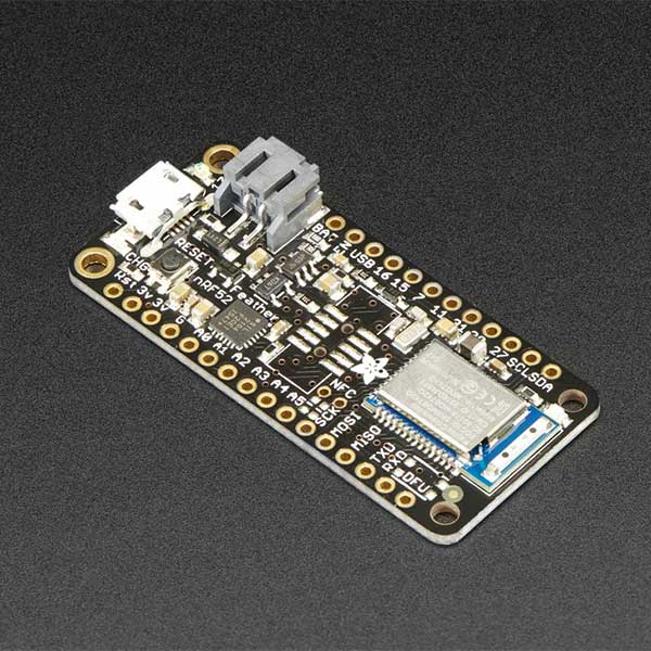 Feather nRF52 Bluefruit LE nRF52832 een makkelijk te gebruiken Bluetooth Low Energy bord, op basis van de nRF52832 bluetooth chip. Deze chip heeft tweemaal de Flash, SRAM en prestaties van de eerdere op nRF51 gebaseerde Bluefruit-modules. Het beste van alles is dat het Arduino IDE-ondersteuning heeft, dus er is geen ‘helper’-chip zoals de ATmega32u4 of ATSAMD21 meer nodig. In plaats daarvan is deze chip rechtstreeks te programmeren! Het heeft veel GPIO, analoge ingangen, PWM, timers, enz. Doordat er geen extra chip nodig is, zijn de prijs, complexiteit en energieverbruik allemaal lager / beter. Hiermee kun je code rechtstreeks op de nRF52832 uitvoeren, rechtstreeks vanuit de Arduino IDE, net als met elk ander MCU- of Arduino-compatibel apparaat.