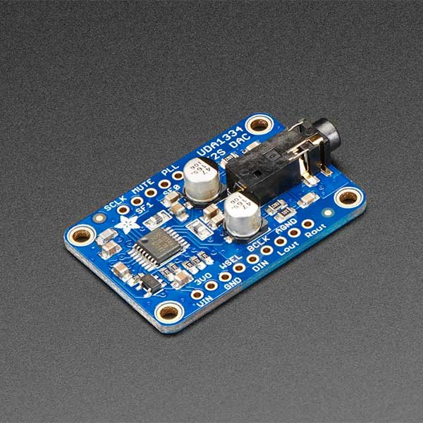 I2S Stereo Decoder UDA1334A. Deze volledig functionele UDA1334A I2S Stereo DAC-breakout past perfect bij elke I2S-uitvoeraudio-interface. Betaalbaar, maar klinkt geweldig! De NXP UDA1334A is veelzijdig: u kunt 3.3V – 5V logische niveaus gebruiken en meerdere verschillende formaten verwerken door twee pinnen in te stellen op hoog of laag. De DAC verwerkt gegevens onmiddellijk en geeft u een duidelijke, analoge, stereo lijnniveau-uitvoer. Het werkt zelfs met de MCLK-loze I2S-interfaces zoals de Raspberry Pi een ingebouwde PLL genereert de juiste klok van het bitclock-signaal.