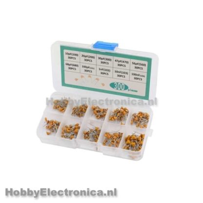 Keramische condensatoren kit 300 stuks. Deze uitgebreide set biedt 10 verschillende waarden, elk vertegenwoordigd door 30 hoogwaardige condensatoren, variërend van 10PF tot 100NF (100 ~ 104) met een nominale spanning van 50V. Deze set wordt geleverd in een handige opbergdoos, waardoor het de ideale keuze is voor zowel beginners als doorgewinterde elektronica-enthousiastelingen.