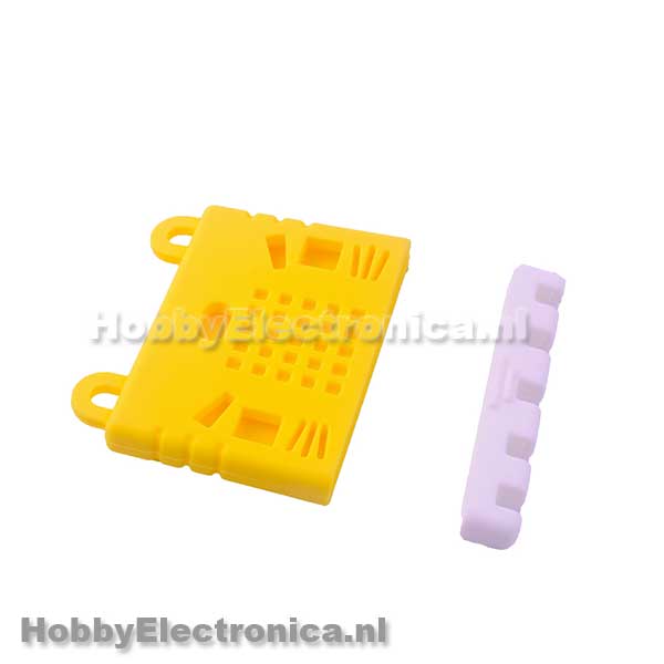 Kitty case geel. Deze silicone case past perfect om de micro:bit en beschermt deze. Ook te gebruiken als je met de micro:bit bezig bent. Alle aansluitingen, buttons zijn bereikbaar en de LED’s zijn zichtbaar.