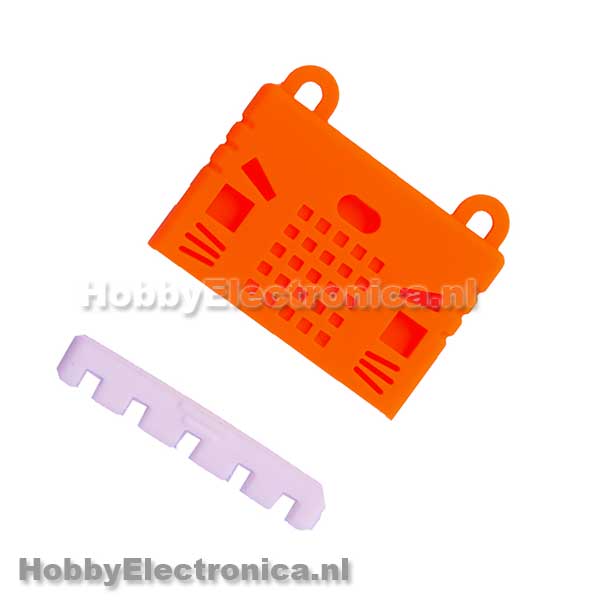 Kitty case oranje. Deze silicone case past perfect om de micro:bit en beschermt deze. Ook te gebruiken als je met de micro:bit bezig bent. Alle aansluitingen, buttons zijn bereikbaar en de LED’s zijn zichtbaar.
