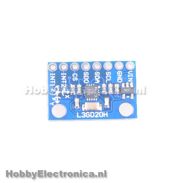 L3GD20H Module 3-Axis Gyro Carrier with Voltage Regulator. Is een type sensor dat draaiende bewegingen kan detecteren. Vaak gebruikt in combinatie met een versnellingsmeter, om 3D motion capturen.