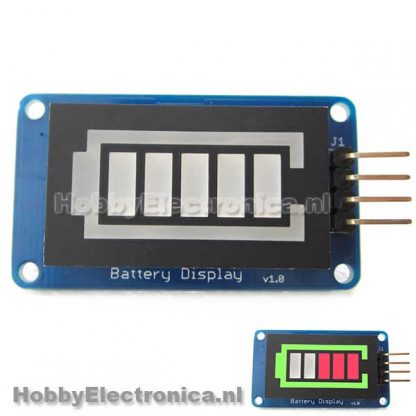 LED bar batterij. Laat de status van een batterij zien op een LED bar. Op basis van de TM1651 chip, hierdoor zijn er maar 2 pinnen nodig voor de aansturing. Voor 3.3V en 5V logica.