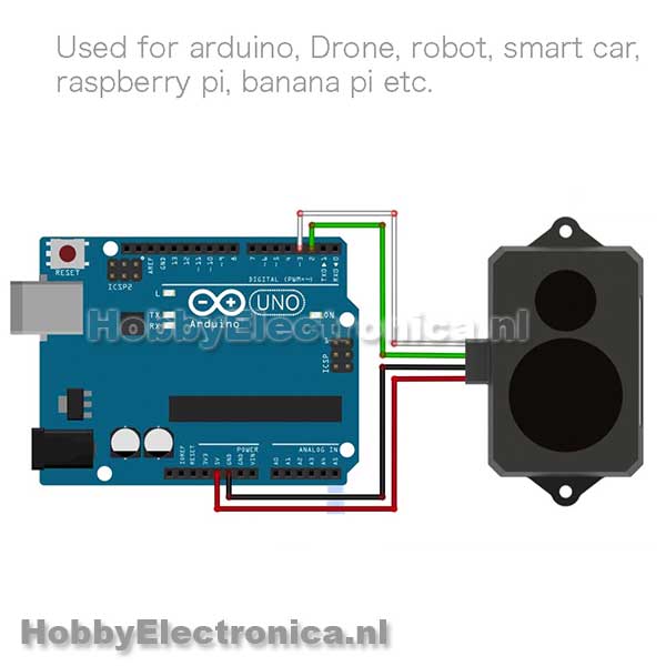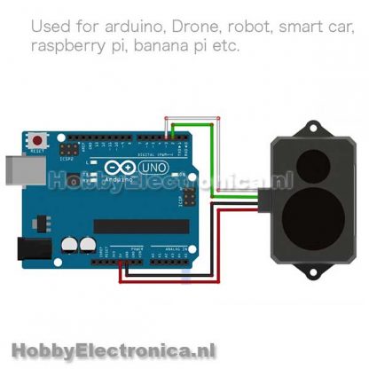 LiDAR TFmini micro module. LIDAR (LIght Detection And Ranging of Laser Imaging Detection And Ranging) is een technologie die de afstand tot een object of oppervlak bepaalt door middel van het gebruik van laserpulsen. Een betaalbare, compacte en laag in stroomverbruik module. Het ingebouwde algoritme dat is aangepast aan binnen- en buitenomgevingen kan een uitstekende bereik garanderen tegen lage kosten en in een klein volume, wat de toepassingsgebieden en scènes van LiDAR sterk uitbreidt en een stevige basis legt voor toekomstige “ogen” in het slimme tijdperk .
