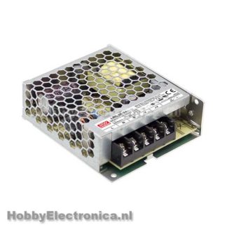 LRS-50-5 voeding 10A DC voeding van Mean Well heeft een uitgangsspanning van 5VDC met een maximale stroomsterkte van 10A. Deze schakelende voeding heeft een gesloten constructie (case) en schroefaansluitingen. Wordt gekenmerkt door de lage bouwhoogte. Hij voldoet aan EN60335-1 (PD3), EN61558-1, -2, -16 en wordt in huishoudelijke apparaten, industriële automatiseringstechnologie of besturingen toegepast. Zeer geschikt voor 5 Volt microcontrollers en 5V ws2812 led strips. Een compact model zonder actieve koeling.