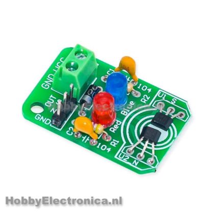 Magneet detectie kit, detecteert de noord of zuid pool van een magneet. Bij zuid detectie gaat er een blauwe led branden en bij noord detectie een rode led. Ook zijn er N(oord) en S(outh) pinnen die naar laag gaan als er detectie is.