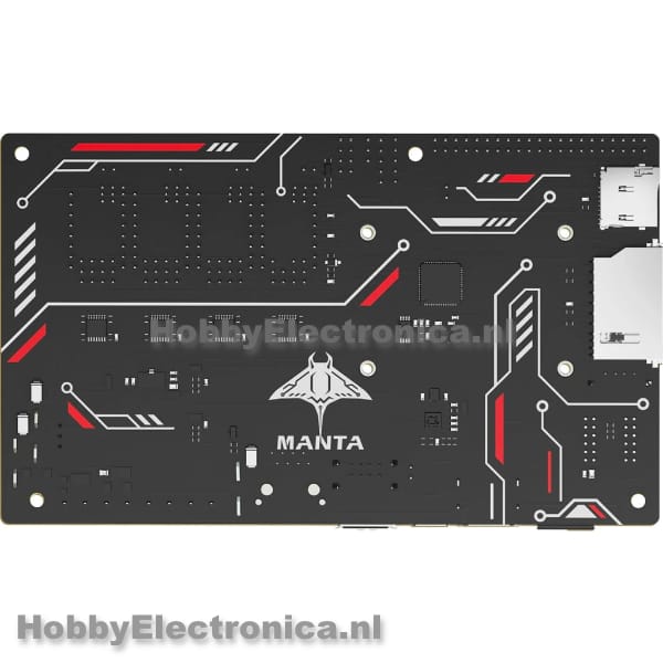 Manta M4p is een veelzijdig 32-bits moederbord dat veel functies heeft en een verscheidenheid aan upgrade-opties biedt dankzij de vele interfaces. De Manta M4P is uitgerust met dezelfde connector als Raspberry Pi compute module. Hierdoor kan het moederbord worden aangesloten op alle versies van de Raspberry Pi CM4 en CB1. Dit maakt het een ideaal bord voor een klipper upgrade. Een HDMI-aansluiting maakt de overdracht van audio en video rechtstreeks naar een HDMI-scherm mogelijk!