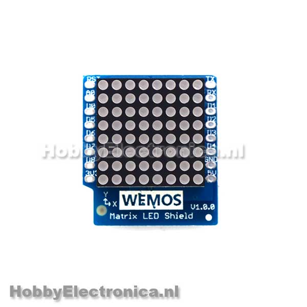 Matrix LED Shield met 8×8 rode LED’s. De helderheid kan in 8 stappen worden ingesteld. Maakt gebruik van de TM1640 chip.