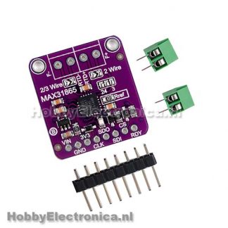 MAX31865 PT100 RTD Temperatuur. Voor nauwkeurige temperatuurdetectie gaat er niets boven een Platinum RTD. Weerstandstemperatuurdetectoren (RTD’s) zijn temperatuursensoren die een weerstand bevatten die de weerstandswaarde verandert naarmate de temperatuur verandert, in feite een soort thermistor. In deze sensor is de weerstand eigenlijk een kleine strook platina met een weerstand van 100 ohm bij 0 ° C, dus de naam PT100. In vergelijking met de meeste NTC / PTC-thermistoren is het PT-type RTD veel stabieler en preciezer (maar ook duurder) PT100’s worden al vele jaren gebruikt om de temperatuur in laboratorium- en industriële processen te meten en hebben een reputatie voor nauwkeurigheid ontwikkeld (beter dan thermokoppels), herhaalbaarheid en stabiliteit.