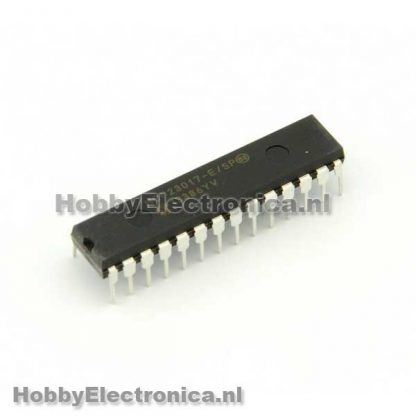 MCP23017-E/SP i2c poort expander. Voeg 16 pinnen to aan je microcontroller met de MCP23017. De MCP23017 gebruikt 2 i2c pinnen en je krijgt er 16 pinnen voor terug. De pinnen kunnen worden gebruikt als input of output.