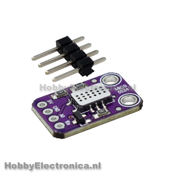 MCS-5524 multi gas sensor module voor detectie van gevaarlijke gassen en luchtkwaliteit monitoring. Detecteert 5 verschillende gastypes met analoge output voor Arduino en microcontroller projecten. Ideaal voor educatieve en hobby toepassingen.