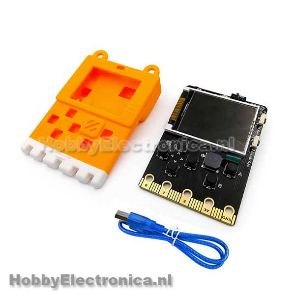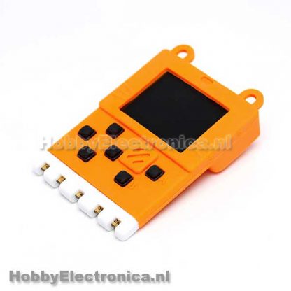 Meowbit console oranje is een programmeerbare gameconsole waarmee je een uniek spel zelf kunt coderen met Makecode arcade en Python. Omdat het compatibel is met het Micro:bit bord, kan het ook werken als een bedieningspaneel voor een robot. Het uiterlijk is een 1,8-inch 160 x 128 TFT-kleurenscherm dat het spel intuïtiever maakt. Het heeft de DFU-modusknop, resetknop, maar ook 6 programmeerbare knoppen, je kunt genieten van de speciale game-interface en de bedieningsmodus.
