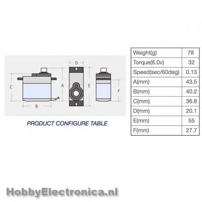 – Bedrijfsnelheid (7.4v): 0.17sec / 60 degree at no load