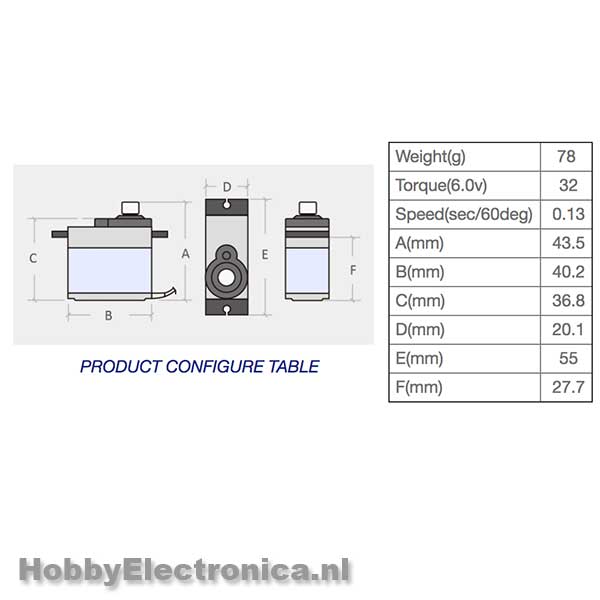 – Stall torque @ 7.4V: 32.0kg.cm