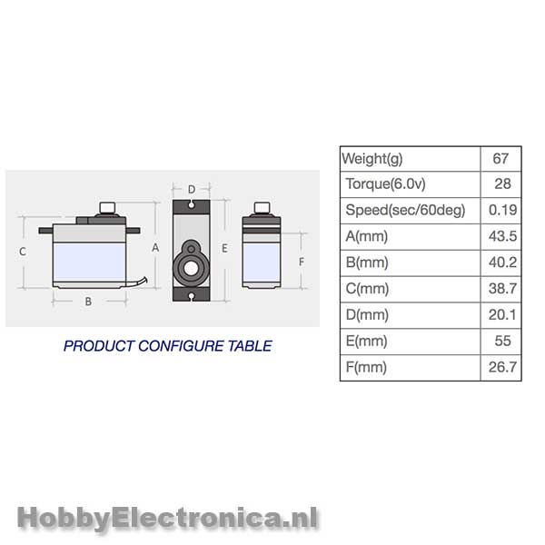 – Bedrijfsnelheid (6.0v): 0.19sec / 60 degree at no load