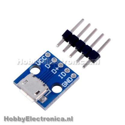 micro USB voeding breakout bord. Afmetingen: 13x14mm