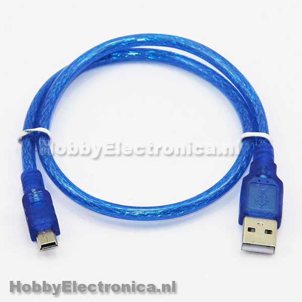 Mini USB kabel geschikt om een Arduino Nano of andere bords op de computer aan te sluiten. Deze USB kabel heeft een dikke afgeschermde mantel om de USB verbinding te bescherming tegen storing van buitenaf.