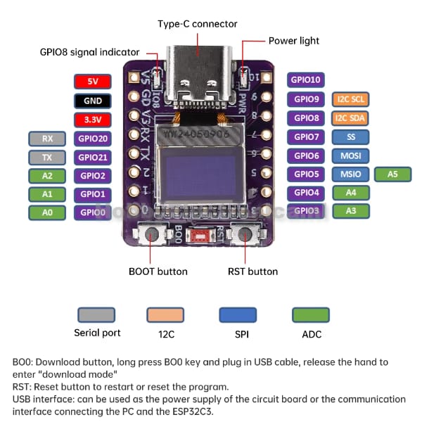 Nano V3 Atmega 328P oled supermini een krachtig en compact Arduino comaptibel ontwikkelbord met een oled schermpje van 0,42inch! Deze Nano V3.0 met moderne Type-C aansluiting is de perfecte keuze voor je elektronicaprojecten. Compact supermini formaat met Type-C usb aansluiting. ATmega328P microcontrolleren CH340G USB-naar-serieel chip. Uitgebreide I/O mogelijkheden en te programmeren met de Arduino IDE.