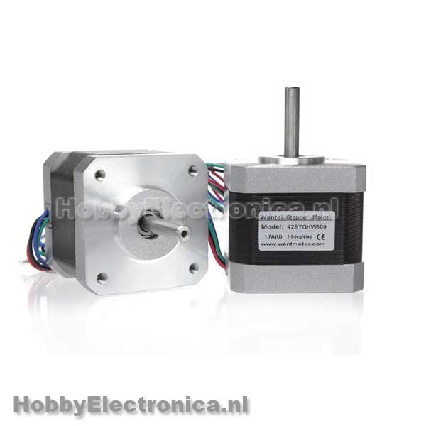 Nema 17 stappen motor 42BYGHW609 3400g.cm holding torque, 1.7A van het merk Wantai voor onder andere 3d printers. Ideaal voor bijvoorbeeld de extruder. Een grote en precieze stappen motor die beweegt in stappen van 1.8 graden. Geleverd per stuk.