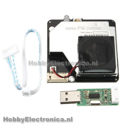 Nova sds011 laser luchtkwaliteit detectie kan de concentratie fijnstof deeltjes meten in de lucht op basis van laser en de strooilicht procedure. Wordt geleverd met bijbehorende kabel en USB naar serieel converter, met CH340 chip, om de sensor eventueel op een computer aan te sluiten. Wordt ook gebruikt in verschillende community meet projecten zoals: luftdaten en sensorcommunity