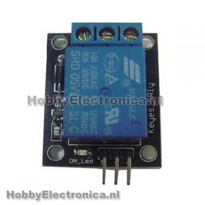 Relais module 1 kanaals 5V KY-019. Relais op deze module is aan te sturen met 5V vanuit oa een Arduino of andere microcontroller. Door middel van de relais kan er geschakeld worden van wisselspanning (max. 230V) en gelijkspanning (max. 30V) tot 10A. Met handige schroefterminals voor het aansluiten van het te schakelen apparaat.