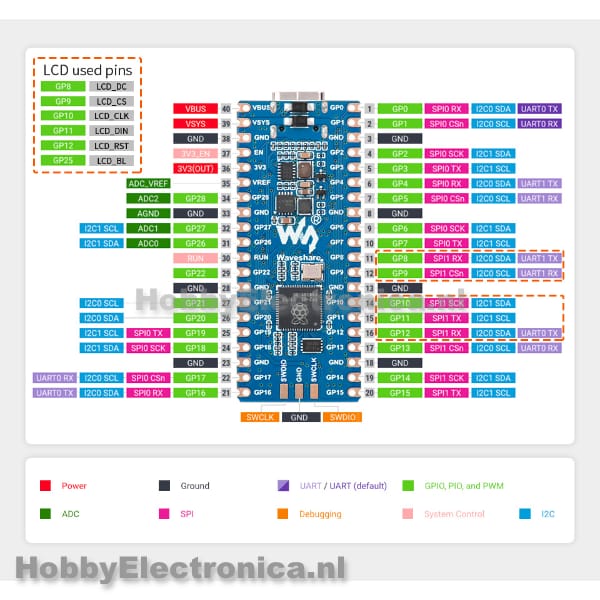 Rp2040 met lcd specificaties: